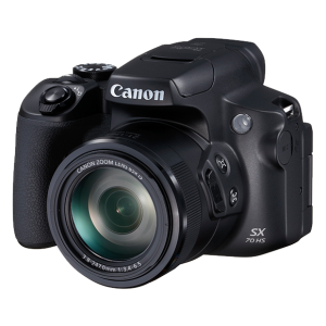 Le Canon PowerShot SX70 HS est un appareil photo bridge haut de gamme connu pour son zoom optique puissant de 65x, son design de style reflex et la prise en charge de la vidéo 4K et des images RAW.